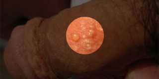 3.生殖器疱疹:生殖器疱疹HSV感染后平均约4~5日,外阴患部先有灼热感,旋即发生成群红痘痘,可为一簇或多簇,继之形成水疱。数日后演变为脓疱,破溃后形成糜烂或浅溃疡,皮损多发于男性的包皮、龟头、冠状沟和阴茎等处,偶见于尿道口。
