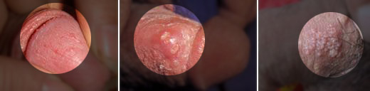 1、龟头出现小红点、小丘疹,阴茎、包皮等处长疙瘩、不明赘生物等。